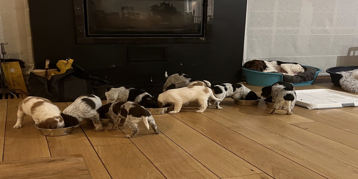 Découvrez nos magnifiques épagneuls de la Vallée d'Anogrune et suivez leur évolution chez nous avant de rejoindre leur nouvelle famille. Nous sommes fiers de vous présenter nos chiots issus de notre élevage familial et de vous inviter à faire partie de notre communauté de passionnés de chiens. Chez nous la calinothérapie est de vigueur!